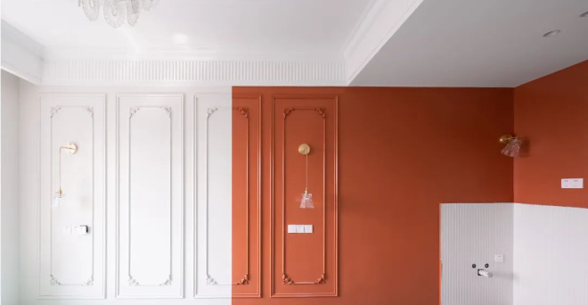 8、墻面如果做分色墻設(shè)計(jì),先刷深色,再刷淺色。