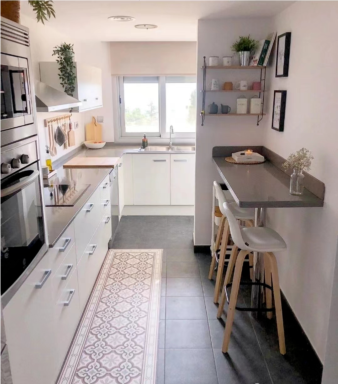 此外,廚房還可以根據需要設計高低臺。常規灶臺高度在70cm-80cm,或者按照做飯人的身高/2+10CM。水槽高度在80cm-90cm,兩個區域最好保留10cm的高度差,日常使用會更舒適。