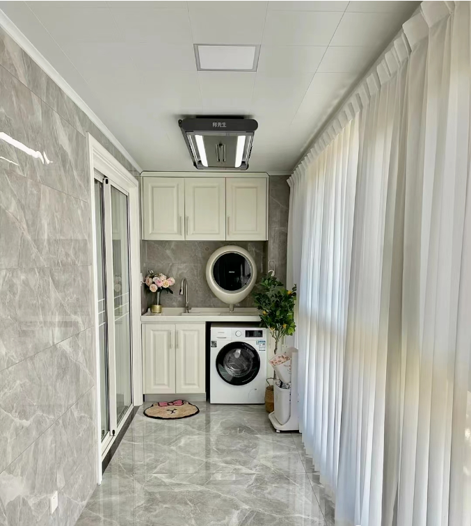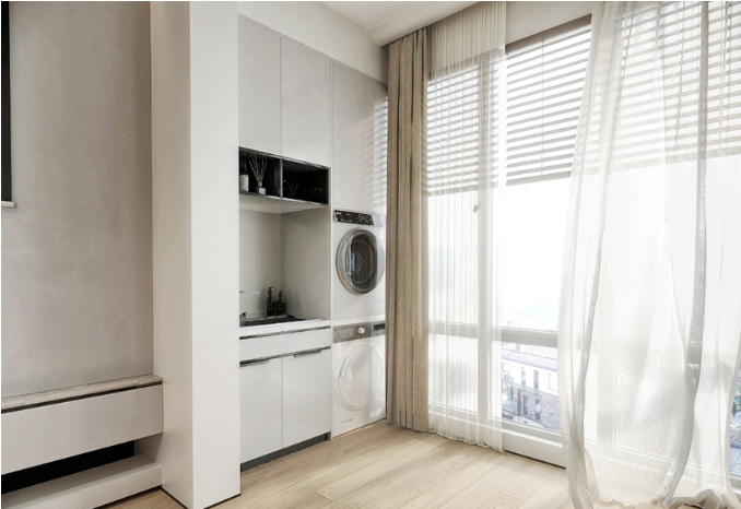 相信大家之前看過不少陽臺改造成書房、休閑區的文章,結果有很多朋友反饋還是做成洗衣房最合適,將陽臺劃分出洗衣區、晾衣區就能一步到位擁有“一體化”的洗衣房。而且還可以利用陽臺柜的收納做成儲物區,存放一些清潔用品或不常用的生活雜物,非常實用~