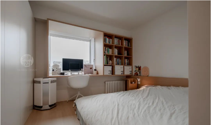 原雞肋飄窗,和腰同高 → 搖身一變,成功變身超長(zhǎng)書房。