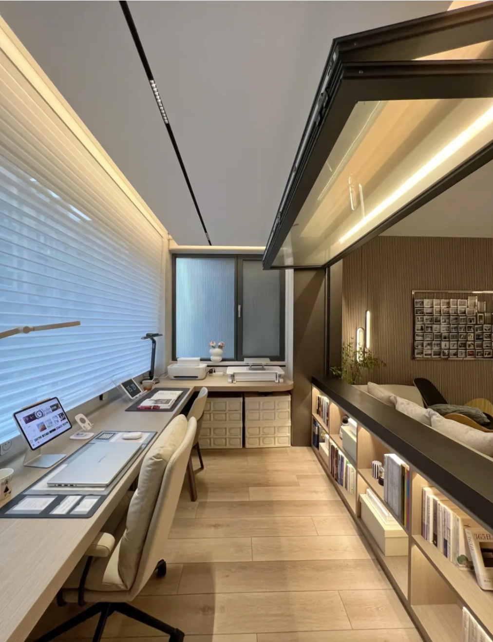 空間有限?不妨將陽臺改造成書房吧!利用陽臺良好的采光和開闊的視野,打造一個高效而舒適的工作學習區域。一張大書桌、一排書架,再加上一扇通透的落地窗,讓靈感與窗外的風景一同流淌。