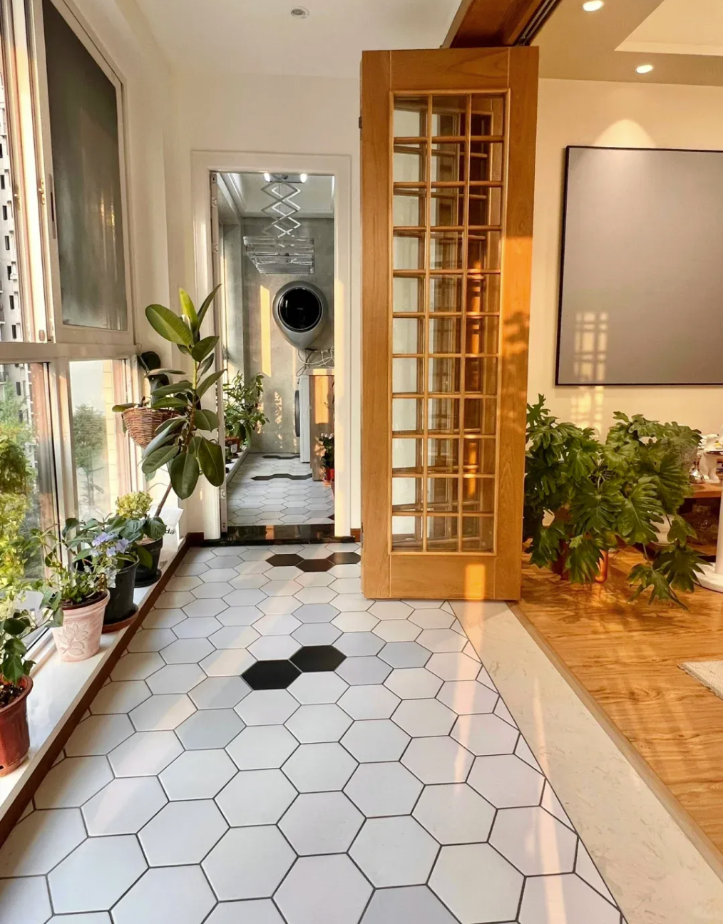 另一側則作為晾曬區,采用隱形晾衣繩或側裝晾衣架,既解決了晾曬需求,又保持了整體的整潔與美觀。